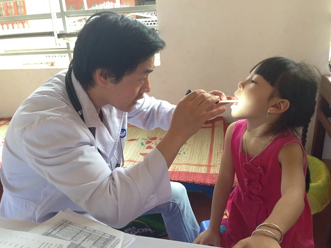 Các bác sĩ đang khám cho người dân tại xã Gia Kiệm, huyện Thống Nhất, Đồng Nai. Ảnh: N.PHONG