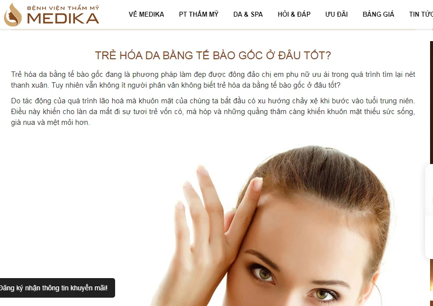 Trước đó, Pháp Luật TP.HCM có bài viết “Thẩm mỹ viện: Muôn kiểu lừa khách”. Bài viết đề cập BV Thẩm mỹ Medika quảng cáo và nhận thực hiện phương pháp làm đẹp da bằng công nghệ tế bào gốc tự thân. Trong khi Sở Y tế TP.HCM khẳng định Bộ Y tế không cấp phép BV Thẩm mỹ Medika thực hiện công nghệ nói trên.