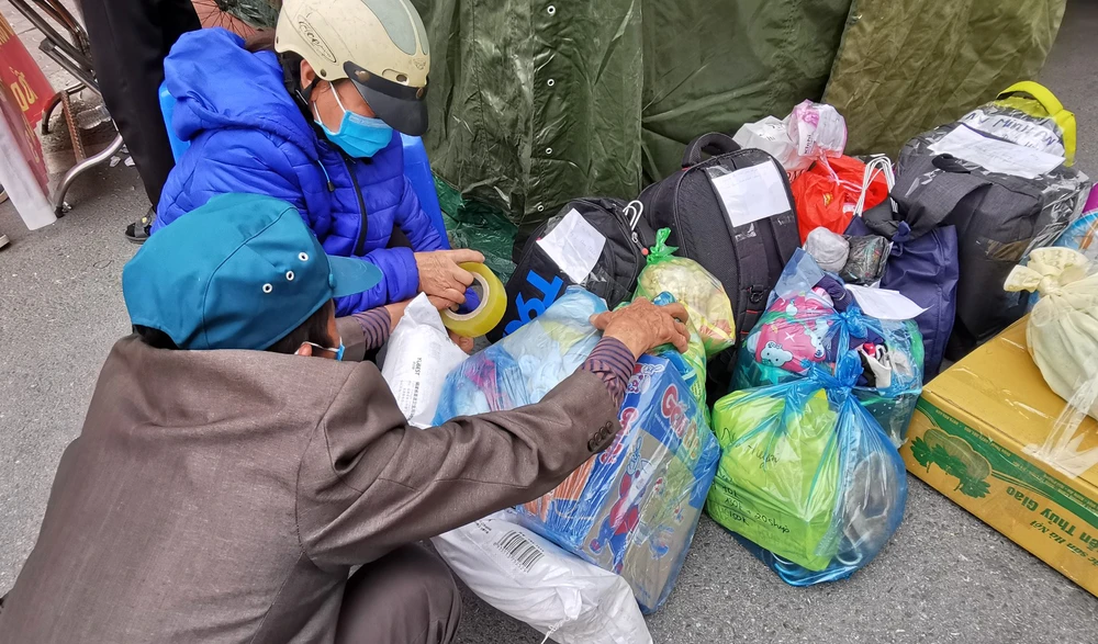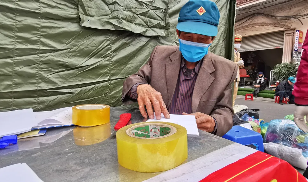Mỗi khi có người dân tới gửi đồ, lực lượng chức năng tại chốt ghi sổ, dán tên người nhận