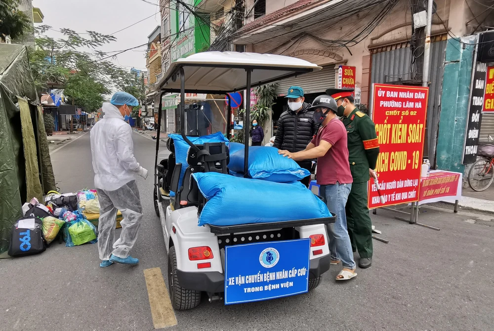 Ngày 29-1, nhiều gia đình có bệnh nhân điều trị tại Bệnh viện trẻ em Hải Phòng (phường Lãm Hà, quận Kiến An) đã gửi đồ dùng cho người thân tại chốt kiểm soát phía ngoài cổng vì bệnh viện đã bị khoanh vùng, nội bất xuất ngoại bất nhập.