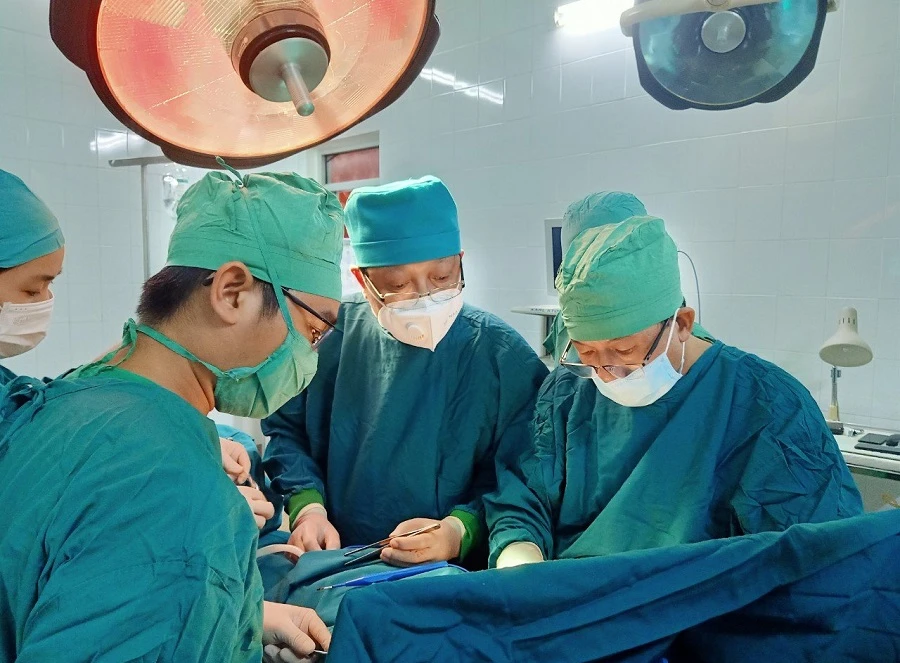 Các bác sĩ thực hiện ca mổ cho bệnh nhân K. Ảnh: BVV