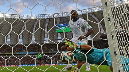 Ở tình huống này, công nghệ mới goal-line đã giúp trọng tài xác định đã có bàn thắng dành cho tuyển Pháp .