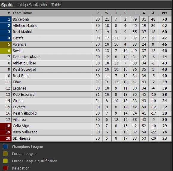 Tuy nhiên, cuối cùng Real cũng đạt được mục đích là giành chiến thắng. Kết quả thắng 2-1 giúp Real có được 60 điểm sau 31 vòng đấu La Liga và vẫn đứng ở vị trí thứ 3. Hiện Real còn kém đội bóng cùng thành phố Atletico 2 điểm và thua kình địch Barcelona 12 điểm trong khi hai đội bóng này đá ít hơn Real 1 trận.