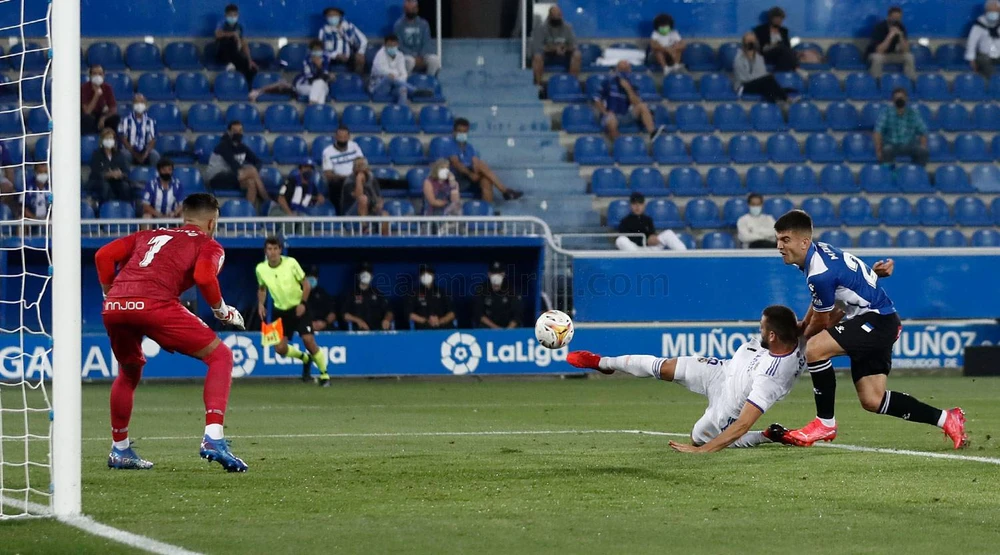 Dù trong tư thế thuận lợi, nhưng số 11 của đội chủ nhà lại sút bóng đi vọt xà ngang. Trong pha bóng này, Alaves có thể được hưởng phạt đền khi Lucas Vazquez bên phía Real để bóng chạm tay trong vòng cấm, nhưng trọng tài không cho chủ nhà được hưởng lợi thế. Kết thúc hiệp một, Alaves và Real Madrd hòa nhau với tỷ số 0-0.