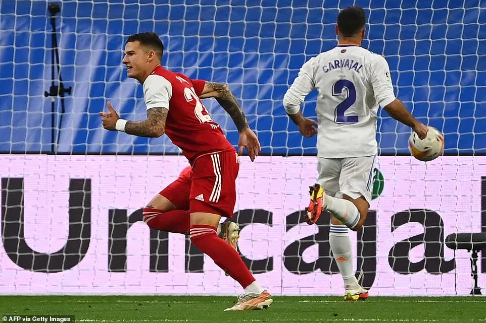 Celta Vigo gây bất ngờ khi dẫn trước Real Madrid ở phút thứ 4 do công của Santi Mina. Ảnh: Getty Images.