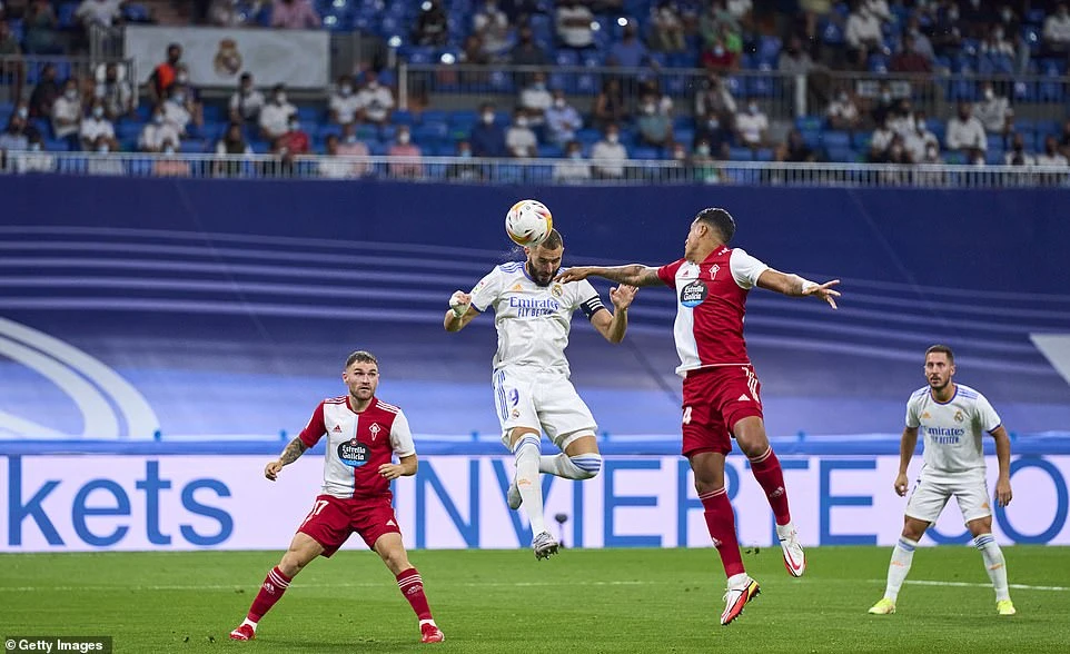 Đến phút 39, Real làm rung lưới Celta Vigo với pha đánh đầu cận thành cả Benzema, nhưng bàn thắng của tiền đạo người Pháp không được công nhận vì trước đó Casemiro ở pha đánh đầu kiến tạo đã mắc lỗi việt vị. Bị trọng tài từ chối bàn thắng, Real Madrid bước vào giờ nghỉ giữa hiệp khi để đội khách dẫn trước 2-1.