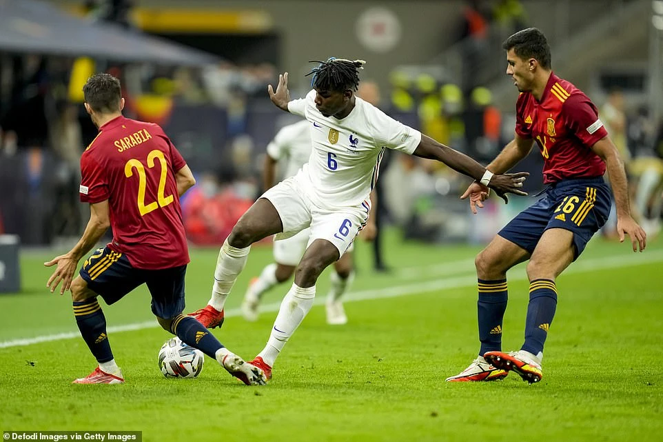 Tây Ban Nha và Pháp cầm chân nhau không bàn thắng trong hiệp một. Ảnh: Getty Images.