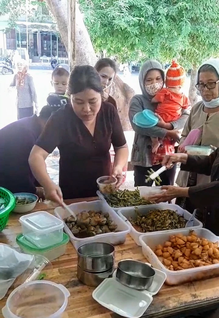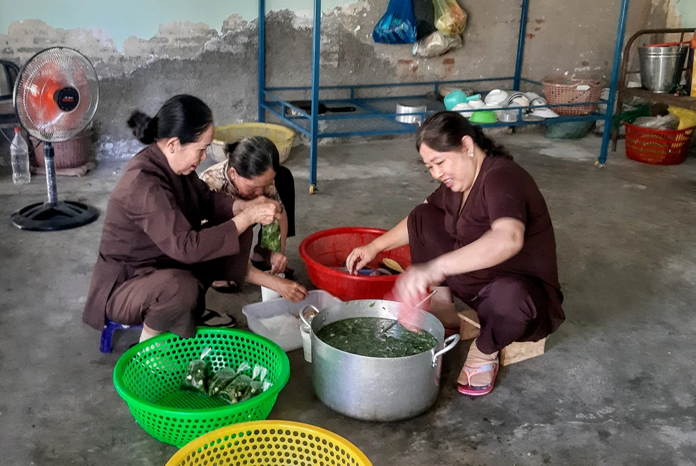 Chị Nguyễn Thị Xin ở Phường Đạo Long, thành phố Phan Rang Tháp Chàm, là tổ trưởng tổ nấu ăn hôm nay cho biết: “Việc tổ chức nấu ăn ở đây do Sư cô Nguyên Tạng chùa Hiếu Lễ, xã Phước Hậu tổ chức. Chúng tôi có 3 tổ ở Phan Rang, thị trấn Phước Dân và xã Phước Hậu.