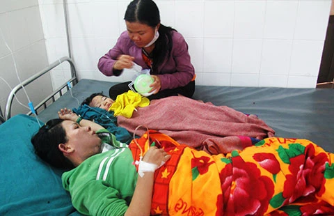 Hai mẹ con chị Lan đang được cấp cứu tại BV Đa khoa Phú Yên. Ảnh: TẤN LỘC