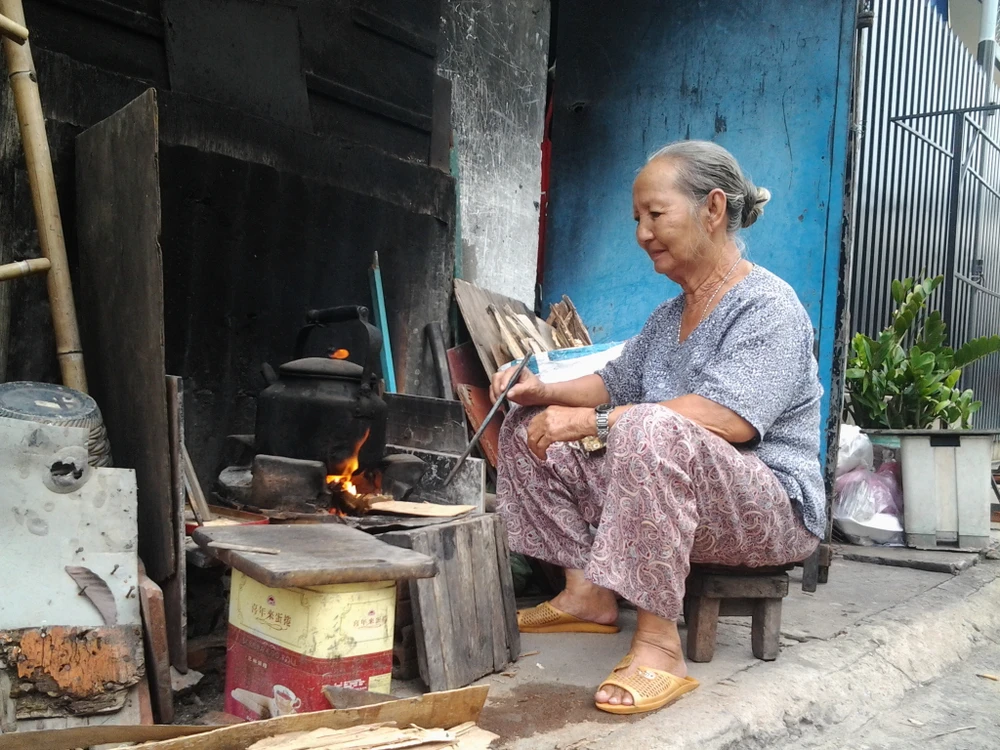 Nấu bếp gas hay bếp điện đối với bà Ba Tân, nó là thứ gì đó xả xỉ vô cùng. Bà nói bình gas nhìn cứ như... quả bom, nên không bao giờ dám đụng vào bếp gas. “Cái góc bếp nhỏ luộm thuộm bên hiên nhà trở thành nơi thân quen của tôi. Hầu như tôi ngồi đây suốt ngày, hết nấu ấm nước rồi kho cá, nấu cơm, nấu canh. Coi vậy mà hàng tháng trong nhà tiết kiệm được số tiền điện, tiền gas kha khá...”. Con cháu bà BaTân thấy ngồi bên bếp lửa cũng là niềm vui tuổi già nên cũng không nỡ ngăn cản.