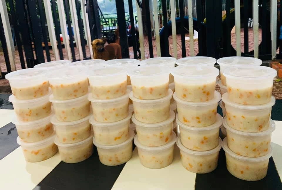 Các phần cháo bí ngô gửi đến bệnh nhi khoa Ung Bướu, BV ĐH Y Dược. Ảnh: NVCC