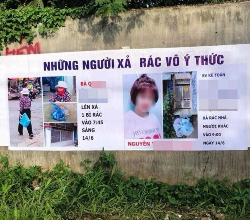 Hình ảnh những người xả rác bừa bãi bị dán trên tường