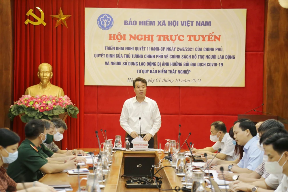 Sáng 1-10, Bảo hiểm xã hội (BHXH) Việt Nam tổ chức hội nghị trực tuyến triển khai gói hỗ trợ 38.000 tỉ đồng (theo nghị quyết 116 của Chính phủ) cho người lao động (NLĐ) và người sử dụng lao động (NSDLĐ) bị ảnh hưởng bởi dịch COVID, từ quỹ bảo hiểm thất nghiệp (BHTN).