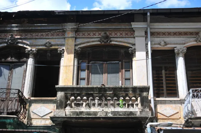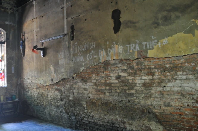 Dấu tích và sự tàn phá của thời gian đã xuất hiện nơi căn biệt thự này. Phần tường tầng trệt của căn biệt thự bị bong tróc, loang lổ từng vệt lớn..