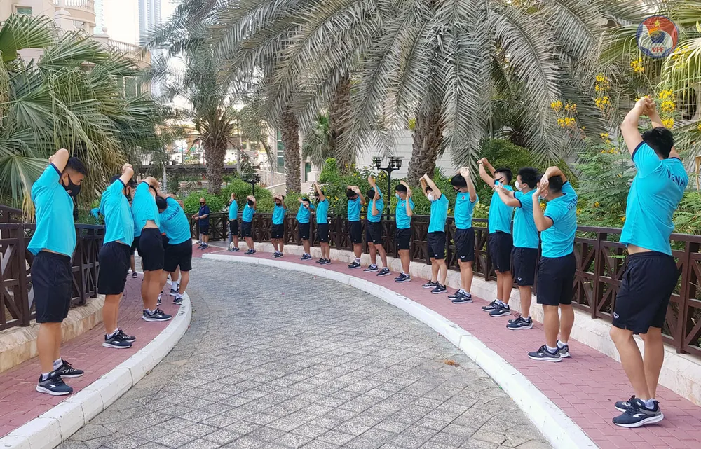 Thầy trò HLV Park Hang-seo sau khi đến sân bay Dubai đã lấy mẫu xét nghiệm RT-PCR về phòng chống dịch COVID-19 và đóng quân tại khách sạn 5 sao Swisshotel Al Murooj Dubai. Đội tuyển Việt Nam nhanh chóng ổn định nơi ăn chốn nghỉ và sân bãi tập luyện, kế hoạch thi đấu giao hữu với quyết tâm đạt hiệu quả cao nhất.•