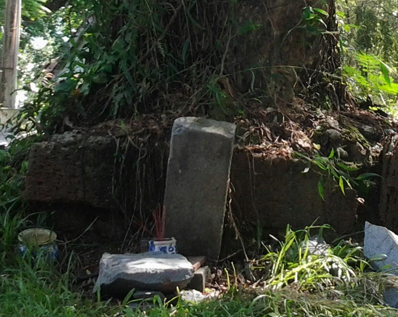 Tấm bia “mả cây” đã bị mờ mất chữ