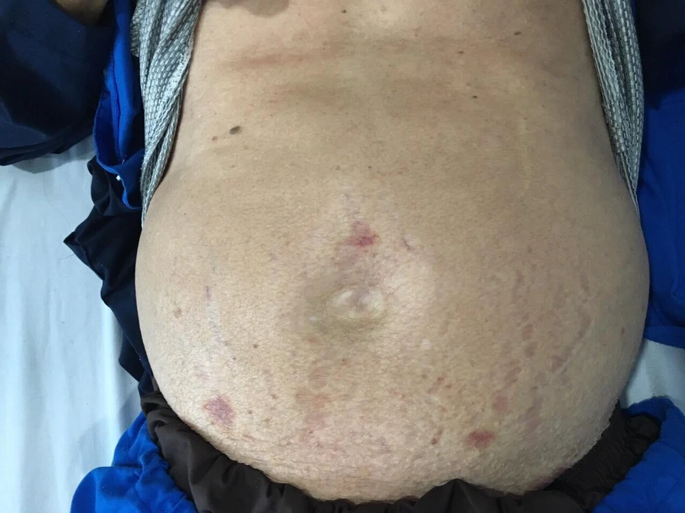 Bụng ông B. trướng to lúc nhập viện. Ảnh: BSCC