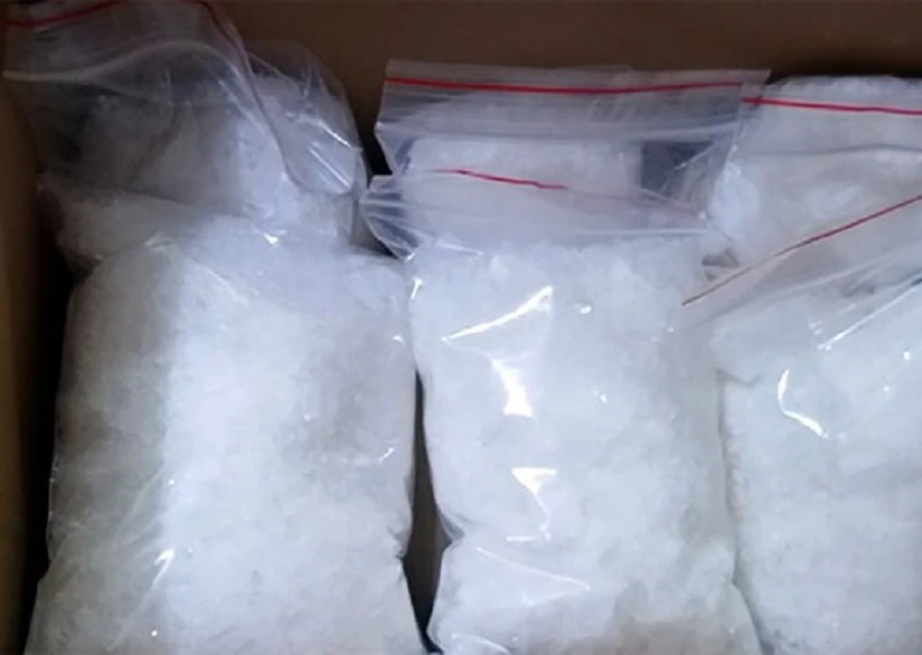 Bên trong gói hàng có ba bao nylon đựng chất tinh thể màu trắng là ma túy 29,906 g loại ketamin và một bao nylon đựng 75 viên nén màu hồng là ma túy 29,415 g loại MDMA.