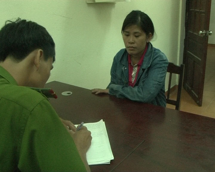 Hai vợ chồng Tân và Nhu tại cơ quan điều tra. Ảnh VIẾT LONG