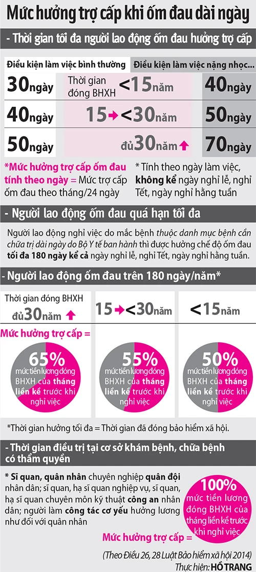 Tôi muốn hỏi theo quy định hiện hành thì tôi được phép nghỉ chế độ ốm đau dài ngày ra sao?