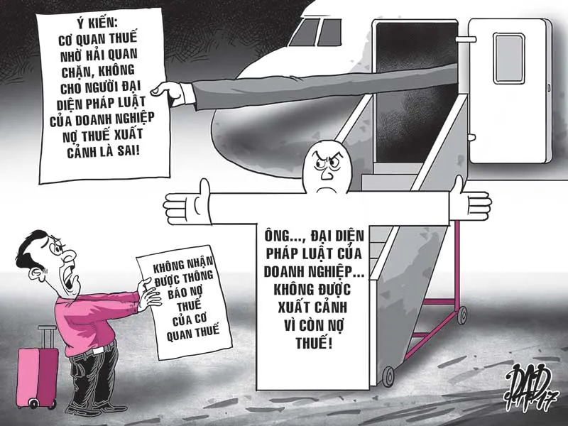 Hai DN trên chỉ là một vài trường hợp điển hình trong số rất nhiều đơn vị hiện nay đang gặp khó khăn vì bị cấm xuất cảnh do nợ thuế. Luật sư Trần Xoa, Giám đốc Công ty Luật Minh Đăng Quang, nói: “Theo quy định tại Điều 53 Luật Quản lý thuế thì chỉ có ba trường hợp bị dừng xuất cảnh. Đó là người Việt Nam xuất cảnh để định cư ở nước ngoài, người Việt Nam định cư ở nước ngoài (Việt kiều), người nước ngoài trước khi xuất cảnh từ Việt Nam còn nợ thuế. Còn trường hợp dù họ là chủ DN, người đại diện pháp luật DN còn nợ thuế nhưng không thuộc ba trường hợp trên thì không thể dừng xuất cảnh họ” - luật sư Xoa phân tích.