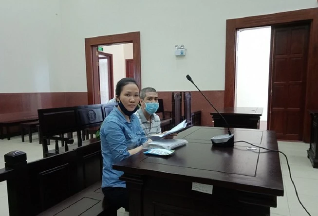 Bị cáo Nguyễn Thị Thanh Thúy và Dương Văn Lợi tại tòa. Ảnh: N.A