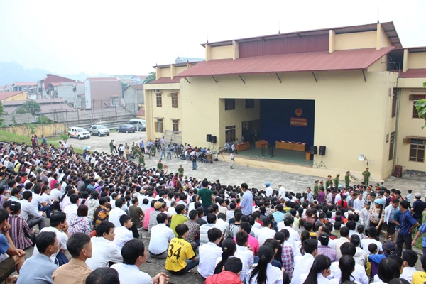 Phiên tòa được xét xử lưu động tại Trung tâm văn hóa - thông tin và thể thao huyện Văn Yên, tỉnh Yên Bái. Ngay từ sáng sớm, hàng ngàn người dân đã tập trung tại đây để theo dõi phiên xử này.
