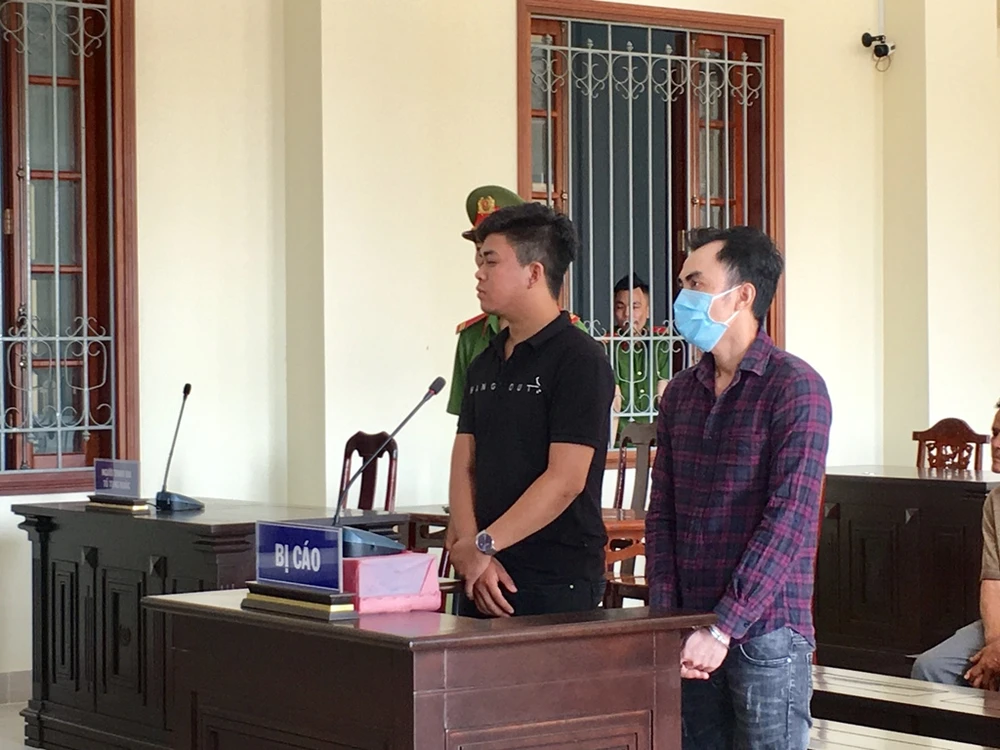 Bị cáo Luân (bìa phải) và Phước nghe tòa tuyên án ngày 27-2. Ảnh: NHẪN NAM