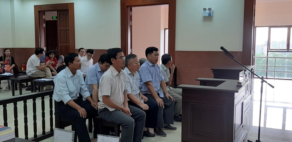 Các bị cáo tại phiên tòa sáng nay. Ảnh: Minh Chung