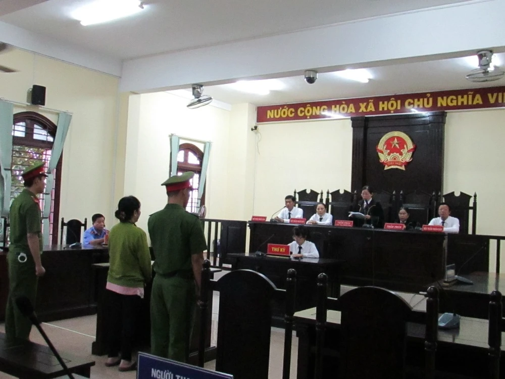 Bị cáo Nguyễn Thị Quỳnh Giao nghe tòa tuyên án chiều muộn 4-7. Ảnh: NN