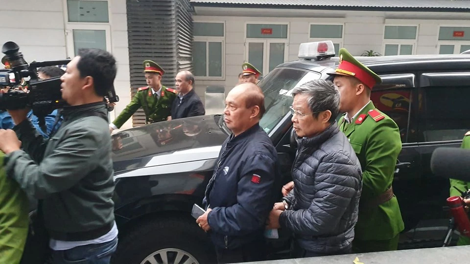 Ông Nguyễn Bắc Son và các bị cáo xuất hiện tại tòa. Ảnh: TUYẾN PHAN