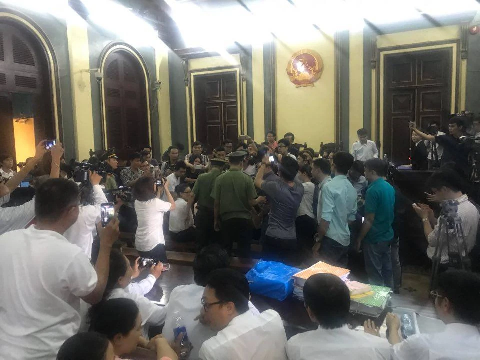 15h35. Tuy nhiên, đến giờ này HĐXX vẫn chưa tiếp tục phiên xử như đã thông báo.