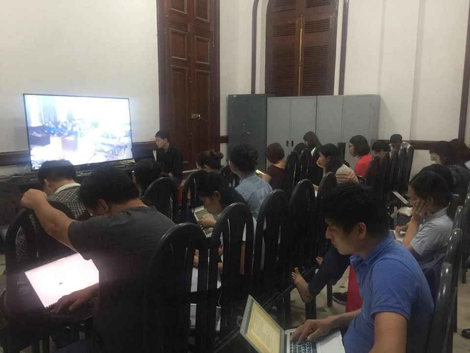 | Báo chí tác nghiệp trong bụi bặm, ồn ào Phiên tòa xét xử vụ thất thoát 3.068 tỉ đồng xảy ra ở Ngân hàng Đông Á (DAB) diễn ra từ ngày 27-11 đến 25-12. Trao đổi với Pháp Luật TP.HCM, đại diện lãnh đạo TAND TP.HCM cho biết do trụ sở tòa đang trùng tu, không thể ngưng một tháng ảnh hưởng đến thời gian thi công. Tòa án TP sẽ cố gắng hết sức để có điều kiện tốt hơn. Hiện cán bộ công chức cũng đang phải chịu cảnh này, đã phải chịu mấy năm nay rồi. Hôm qua, Chánh án TAND TP Ung Thị Xuân Hương cũng đã chỉ đạo gắn thêm một cái màn hình ở phòng ngoài cho báo chí tác nghiệp để đỡ bụi và tiếng ồn... |
