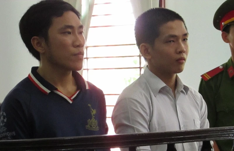 Hai bị cáo Tú và Huy tại phiên tòa phúc thẩm ngày 15-8. Ảnh: N.NAM