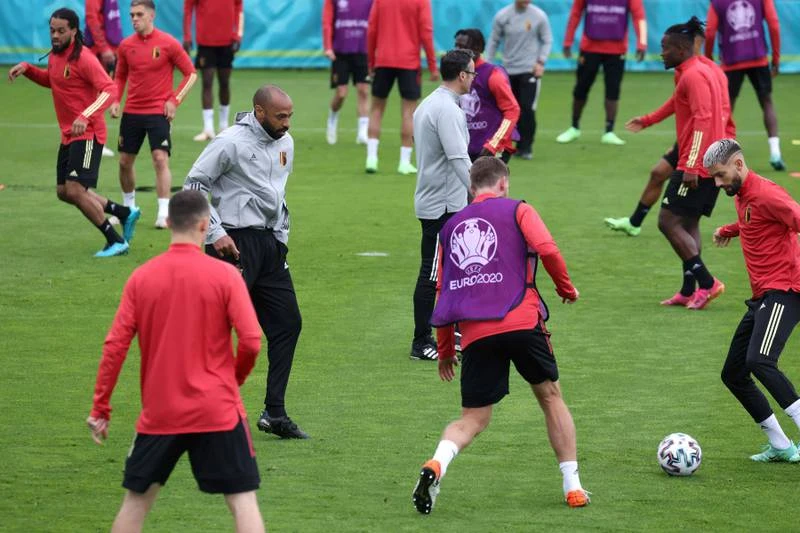 Trợ lý Thierry Henry hướng dẫn các buổi tập của tuyển Bỉ. Ảnh: Getty