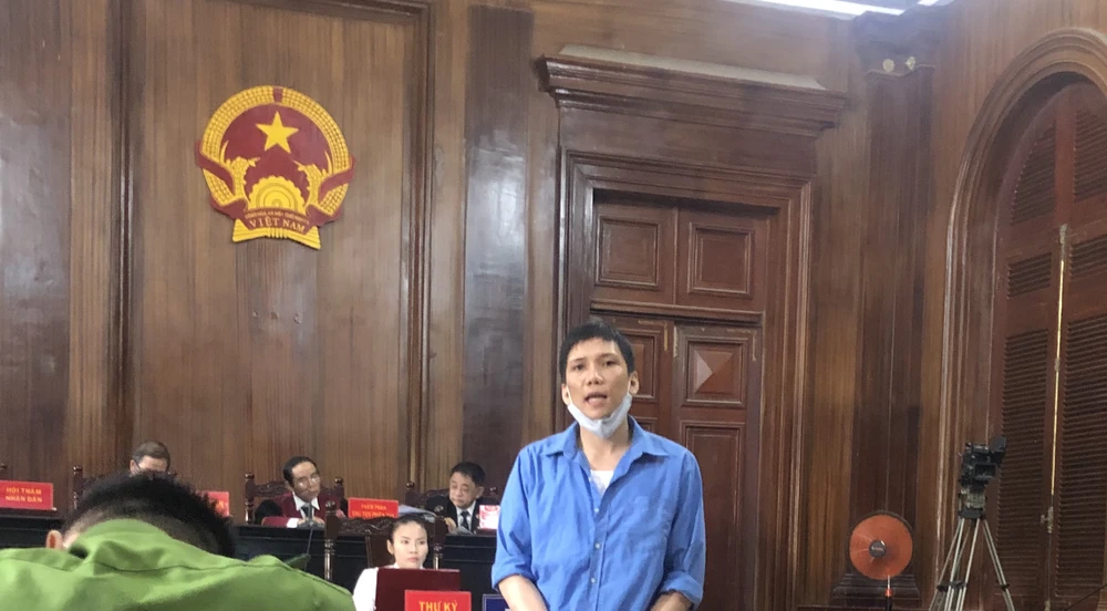 Nói lời sau cùng, bị cáo Trung quay lại xin lỗi gia đình. Ảnh: H.Y