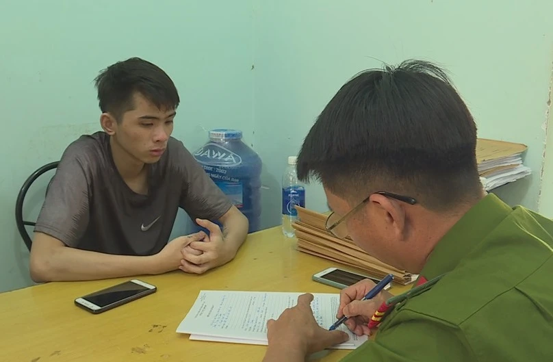 Tuấn tại cơ quan điều tra. Ảnh: A.Đ