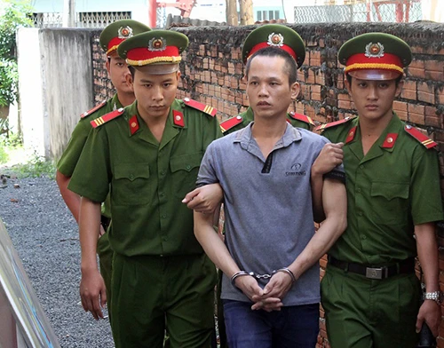 Bị cáo Đào Anh Tuấn đang được áp giải ra xe