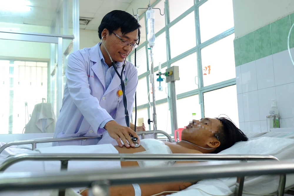 Bệnh nhân đang được bác sĩ thăm khám. Ảnh: HL