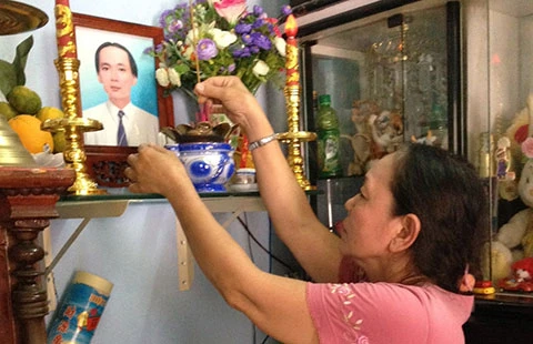 Mẹ anh Dũng bên bàn thờ con. Ảnh: ĐỨC TRÍ