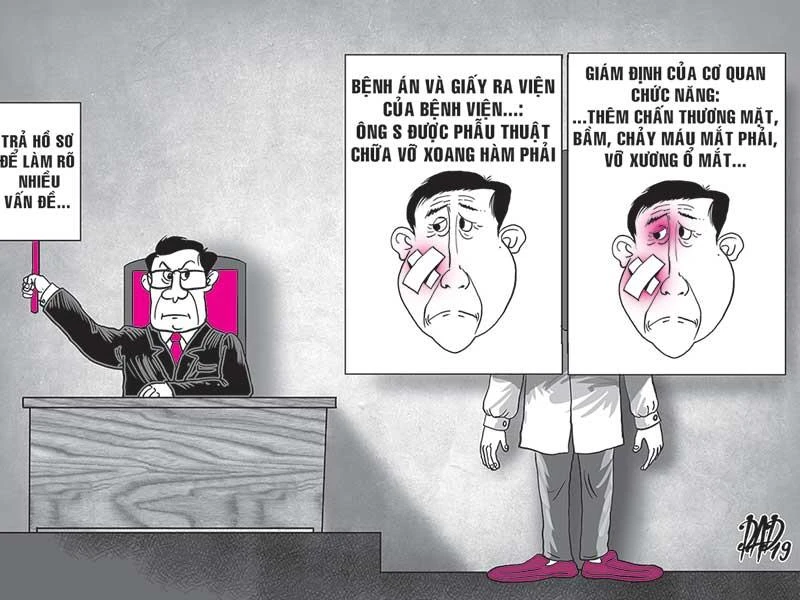 Vì thế, thương tích mà ông Sáu được điều trị tại BV 115 chỉ là vỡ xoang hàm phải và đã được điều trị ổn định, cho xuất viện. Nhưng bản kết luận giám định sau đó lại phát sinh thêm những thương tật mới gồm: chấn thương vùng mặt, mắt phải gây sưng bầm mắt phải, chảy máu khóe trong mắt phải, vỡ xương ổ mắt phải, đã được điều trị chỉnh xương, xoang hàm phải.