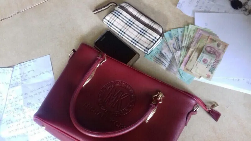Tang vật thu được gồm một xe máy, một dao và một túi xách màu đỏ. Trong túi xách có 7,6 triệu đồng, điện thoại Samsung Galaxy của chị Phạm Thị L. (sinh năm 1969, quê Củ Chi).