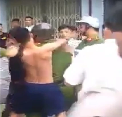 Hình ảnh thanh niên tấn công công an đang làm nhiệm vụ.