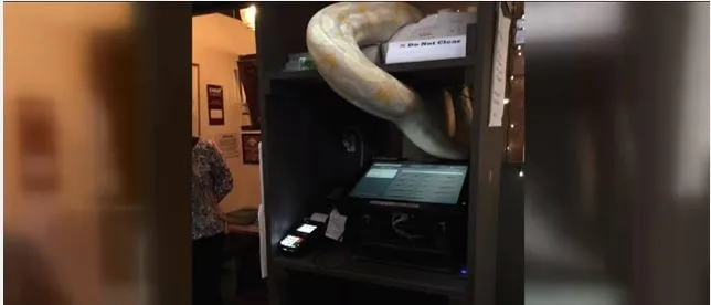 Con trăn bị kẹt trong máy tính tiền. Nguồn: YouTube