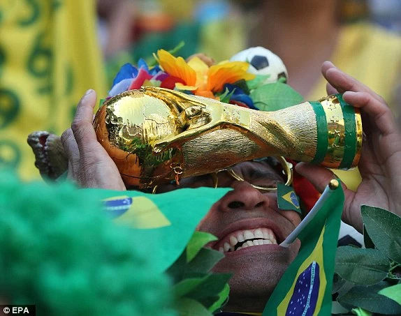 CĐV Brazil ôm cúp... giả thất vọng.