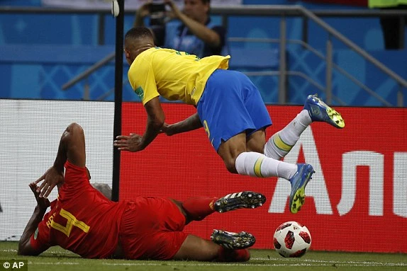 Tình huống đáng chú ý cuối cùng của hiệp một là pha ngã rất khéo trong vòng cấm của Neymar nhưng tất nhiên là với công nghệ hiện đại, đã không có quả phạt đền nào dành cho thầy trò HLV Tite. Hiệp 1 kết thúc với tỉ số 2-0 nghiêng về Bỉ.