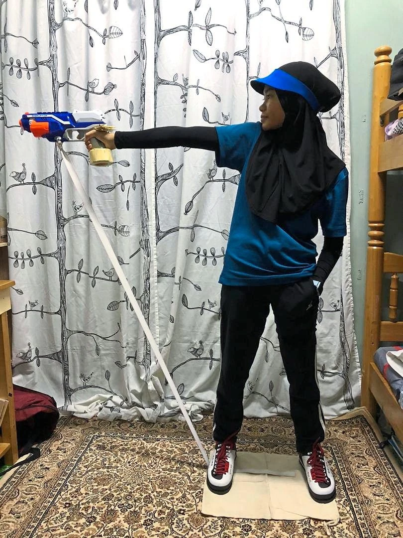Xạ thủ Mumtazah Shamshuri của đội bắn súng Malaysia nói: “Tôi chọn súng nước từ đồ chơi trẻ em để tìm cảm giác ngắm, cảm giác nâng súng, hạ súng…Không còn con đường nào khác tốt hơn. Đến trường tập bắn thì vi phạm MCO. Tôi là xạ thủ súng ngắn 10 m hơi. Tôi chọn khẩu súng nước tương tự để mà duy trì phần nào cảm giác thi đấu”.