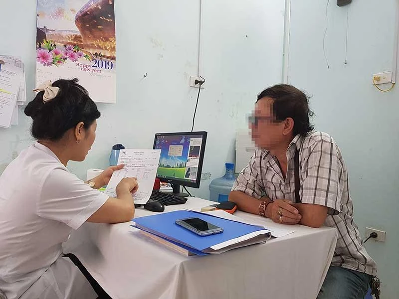 Một bệnh nhân trong tình trạng lạm dụng rượu bia đến BV Tâm thần ban ngày Mai Hương (Hà Nội) làm thủ tục điều trị cai rượu. Ảnh: MAI HIỀN