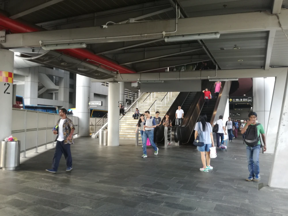 Sau cầu thang dẫn lên cửa thông quan, nhóm chúng tôi bắt tuyến xe buýt CW1-KRANJI để đến ga tàu điện ngầm gần nhất và mua thẻ lên tàu để vào trung tâm Singapore.