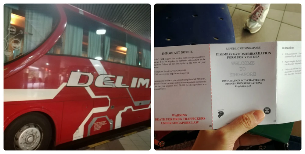 Hãng xe chở chúng tôi nhập cảnh Singapore và phiếu điền thông tin nhập cảnh.